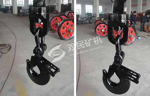 鉤頭裝置有5.0t、7.0t、9.0t、11.0t四種規(guī)格分別與2.0m3、3.0m3、4.0m3、5.0m3吊桶配套使用。
